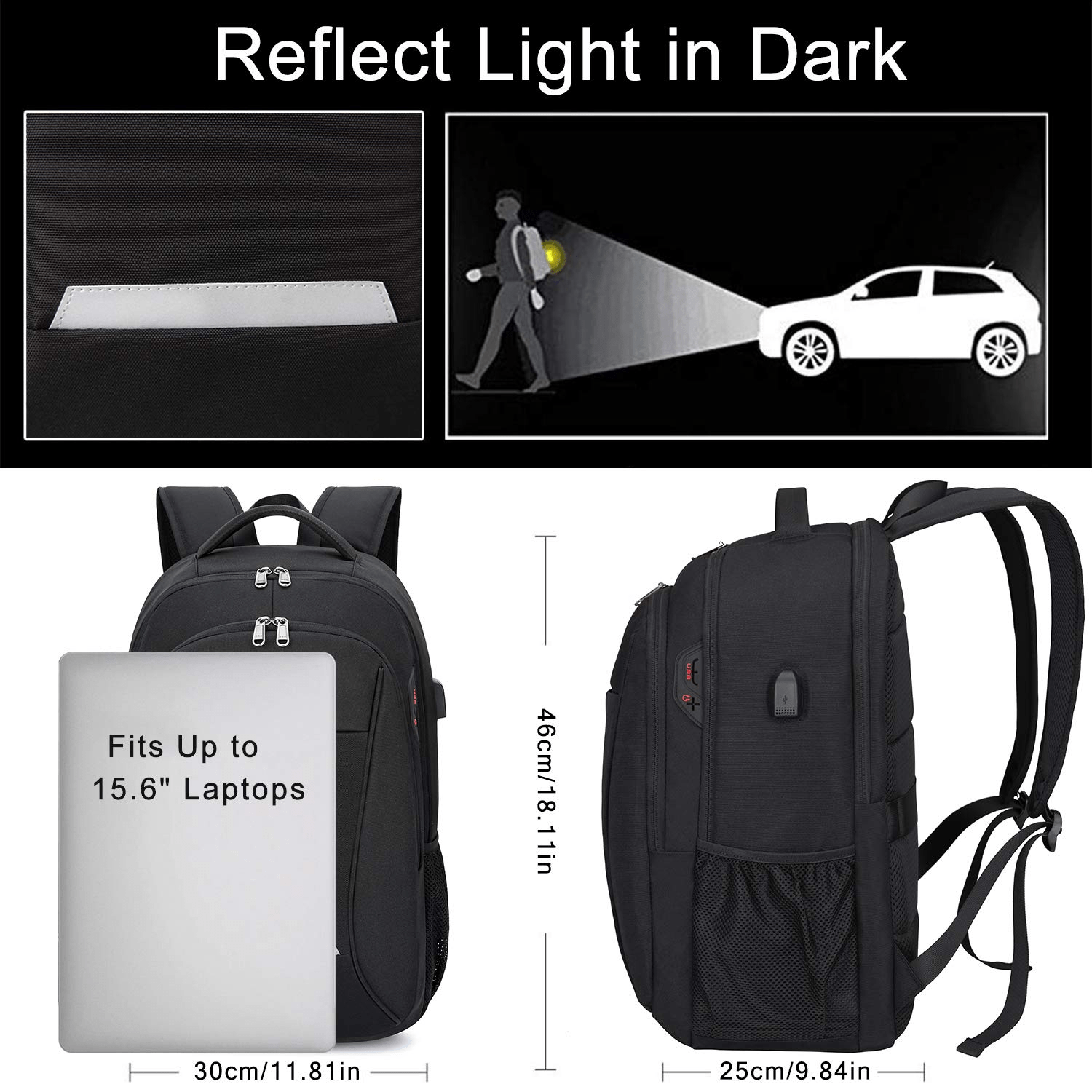 Backpack with Reflective Straps- Water Resistant Double Zippers Wholesale