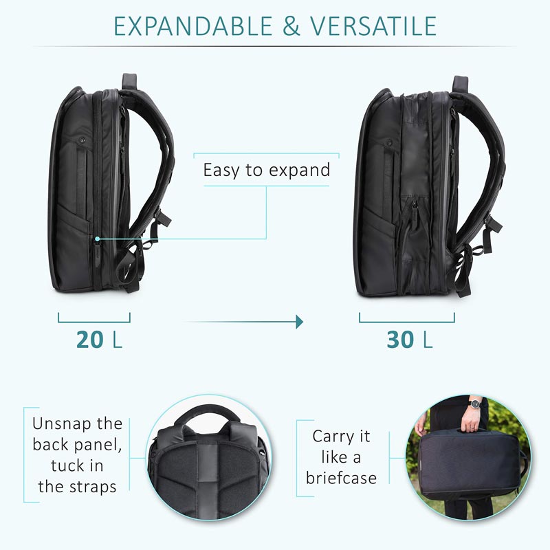 Business Style Backpack: Rugged, durable, roomy backpack made of synthetic fabric with Rain Defender water repellent.
