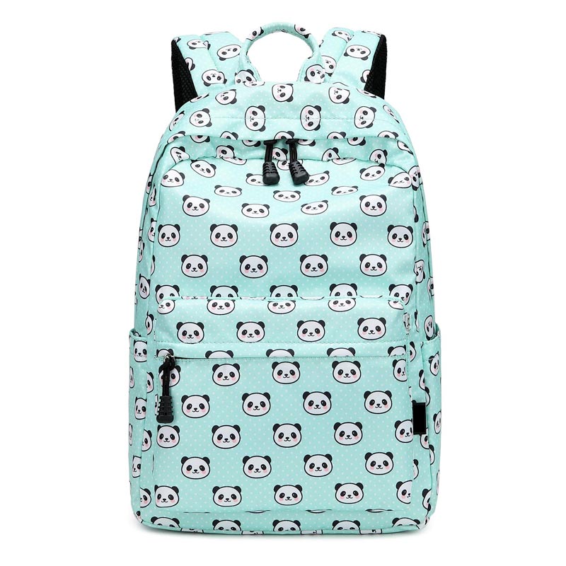 Panda Backpack- Light Green Front Pockets Double Zippers