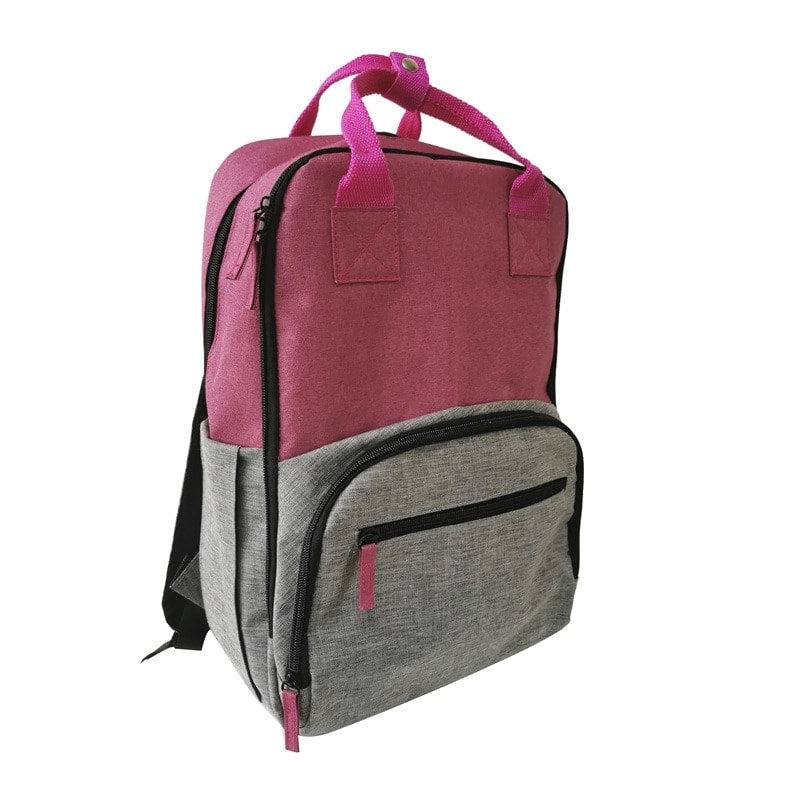 Pink And Gray Backpack- Durable Handle Laptop Compartment