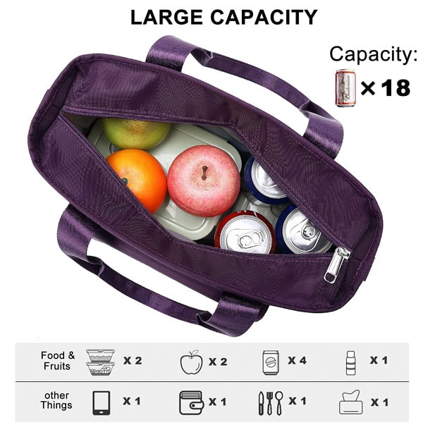 Purple Cooler Bag: Very Lightweight Lunch Tote Bag, you can also use it as a insulated lunch tote with ice bag, picnic bag, sundry bag or shopping bag, Good for packing snacks for long road trips, Perfect insulated lunch bag for outdoor use.