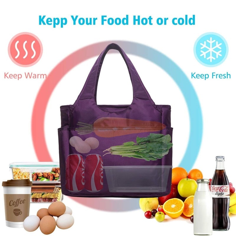 Purple Insulated Cooler Bag: Designed with a firm handle and a removable and adjustable shoulder strap, the reusable adult lunch box can be easily carried with one hand, or it can be firmly tied to a backpack or briefcase.
