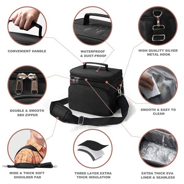 Thermal Lunch Bag: The lining of lunch bag is made of PEVA foil that won’t melt when the bag hold something hot, at the same time, we use a high quality zipper which will minimize the possibility of broken zipper.