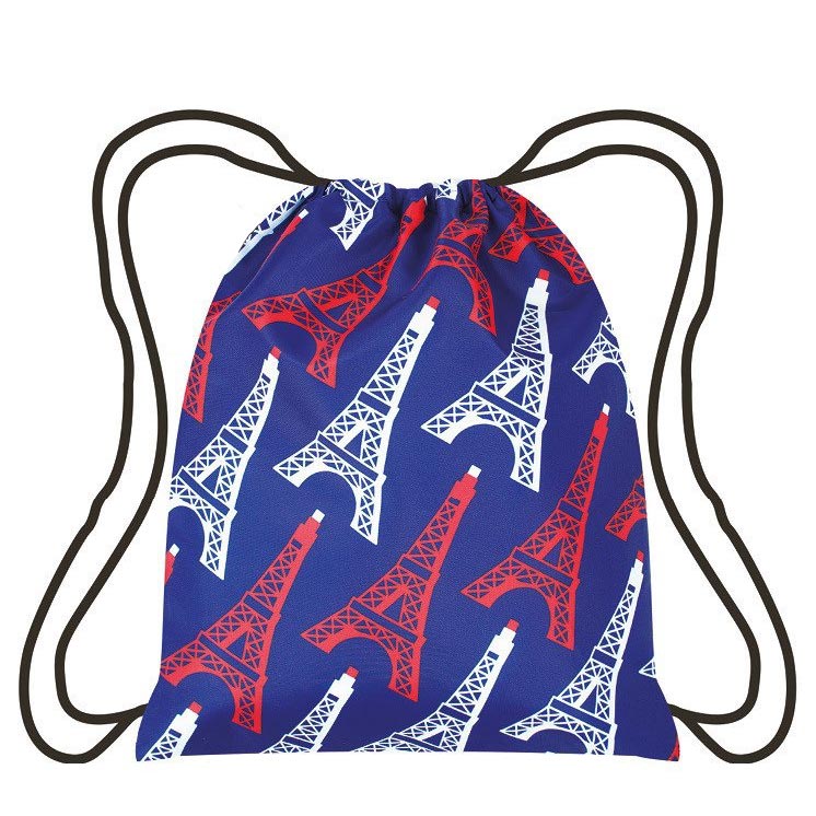 Eiffel Tower Drawstring Bag: Drawstring bag is made of high-density polyester fabric which is lightweight but thick and sturdy and the sewing is also very strong, so our drawstring gym bags are easy to carry and not easy to damage. Denier Polyester with a wide cinch top, front pocket, and designed to be carried as a backpack.
