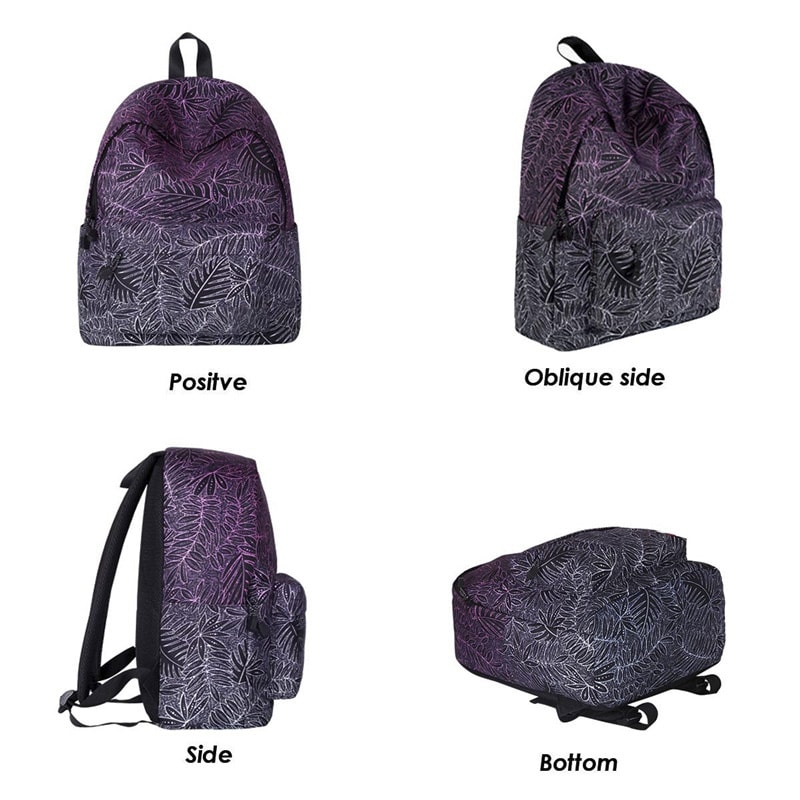 The Leaf Pattern Kids Backpack has double zipper closure main compartment, front pocket, plenty of room to store books, pens, crayon box, pencil pouch, notebook, binder, snacks, and toys.