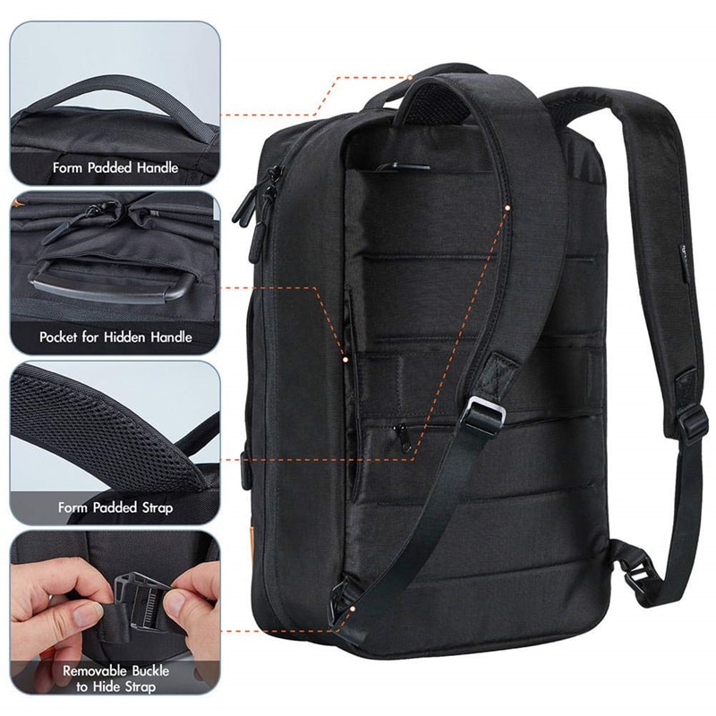 HIDDEN HANDLE AND SHOULDER STRAPS DESIGN: The backpack has a side handle for lifting the bag like a briefcase. it can be invisible. the hidden shoulder straps can turn your backpack into a briefcase.