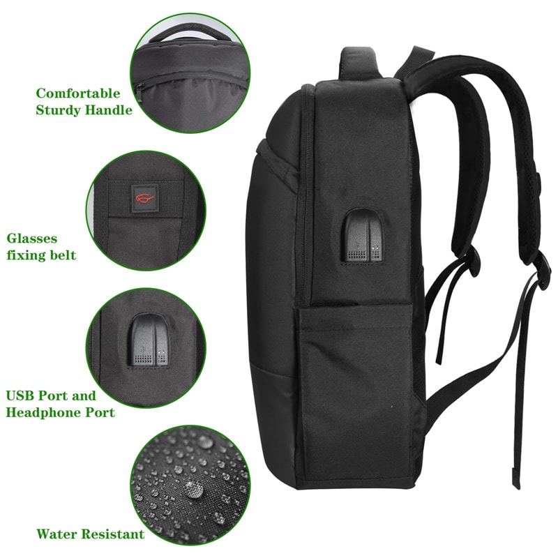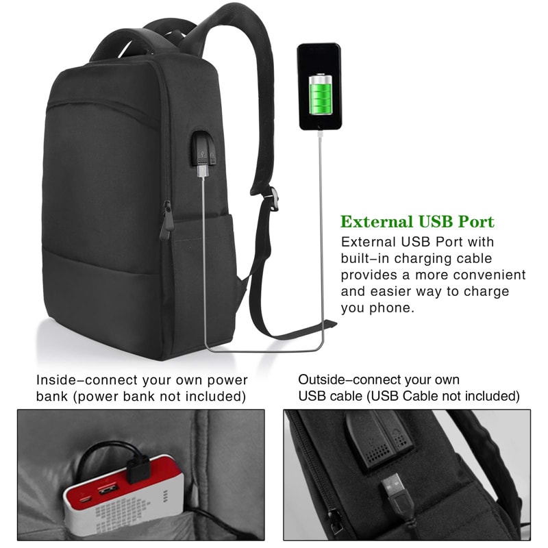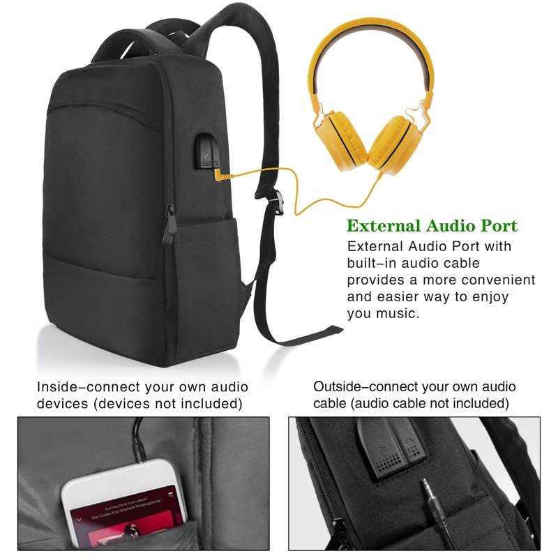 USB PORT AND AUDIO PORT DESIGN: Built-in USB PORT offer a more convenient way to charge your Electronic device by the connected power bank. (POWER BANK IS NOT INCLUDED). Audio port provide you option to listen to music while putting your phone in the backpack.