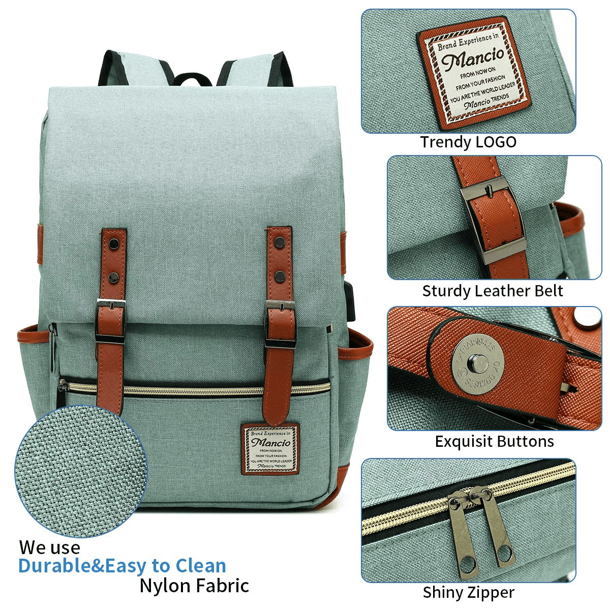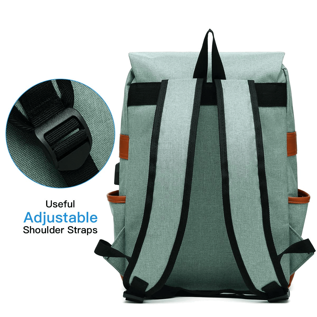 Mochila Oxford para laptop em couro – Bolsos laterais com porta de carregamento USB