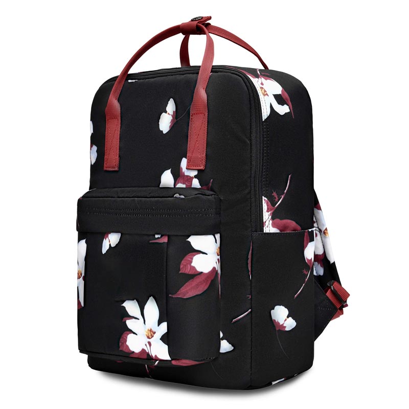 Magnolia School Bag: The computer compartment with protective foam pad can store up to 15.6 inch laptop. With the small item storage bag on the lower front side (there is a key buckle in the storage bag), and a quick access storage bag on the upper front side, you can store and organize all personal belongings conveniently and quickly.