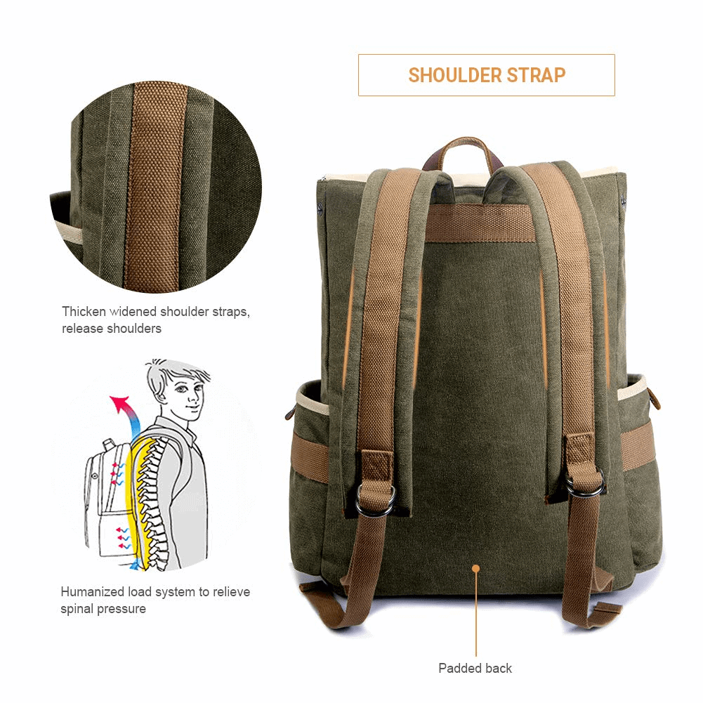 Vintage Canvas School Bag: The computer compartment can hold under 15.6 inch laptop such as 15.6 Inch,14.3 Inch,13.3 Inch laptop.Men and Women Travel Backpack of special design with more than 10 indepedent pockets for large storage and organization for small items.