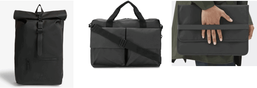 Rains laptop bag brand has made a laptop bag an elegant handbag. Another featured design of the Rains laptop bag is the two separate front pockets, it is sewn onto the main pocket. Its rolltop backpack is more fashionable, and very suitable for college students, like a bicycle commuter, the large capacity can hold all of his EDC.